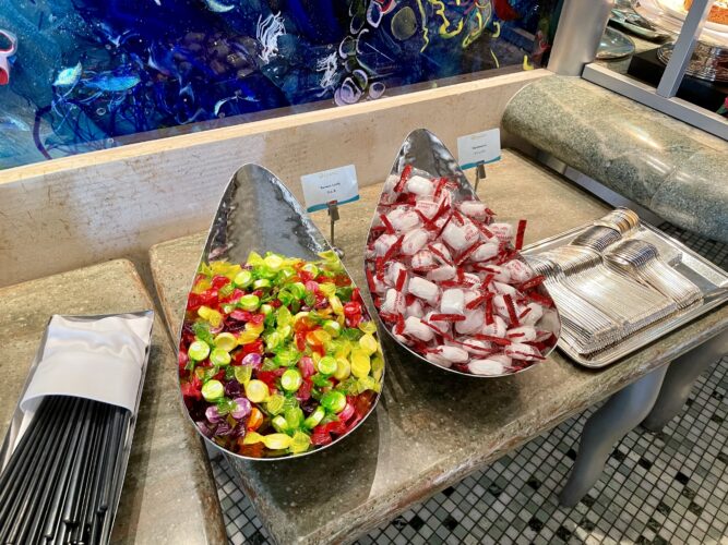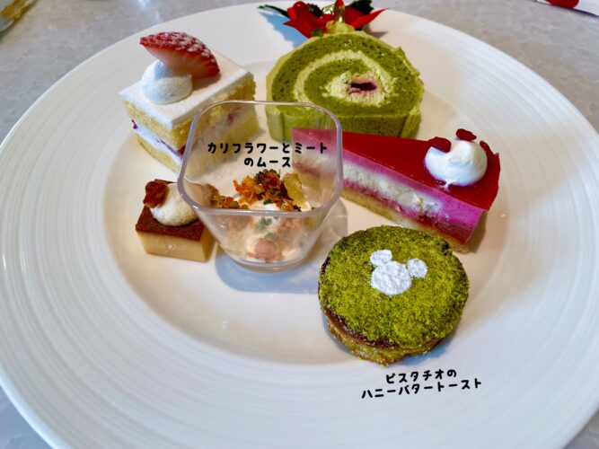 デザートは一口サイズの美しいケーキやゼリーが揃っていました。